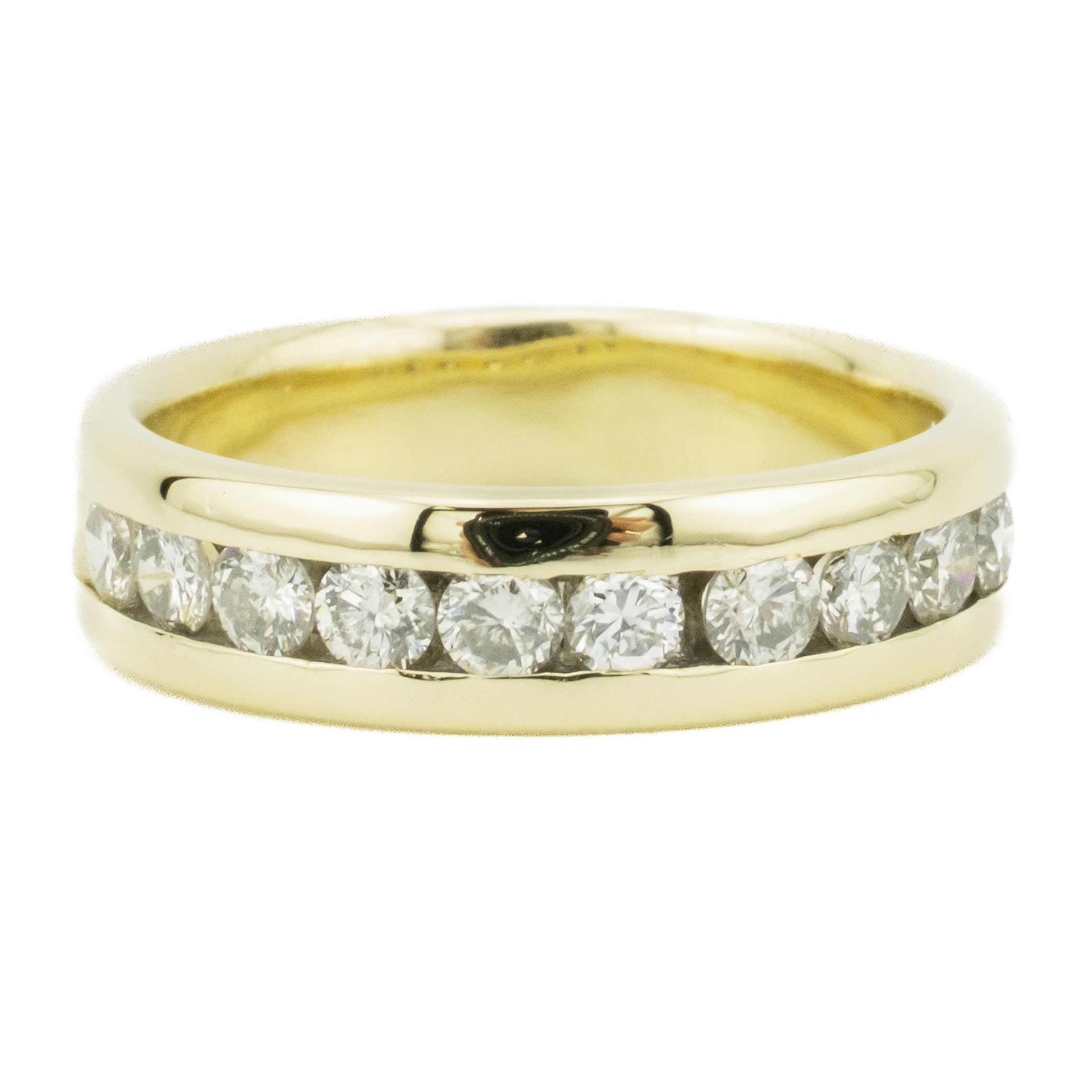 This diamond wedding band is an estate item. It is in good condition. The wedding band has been cleaned and inspected by a professional jeweler. All diamonds have been graded by our GIA trained Accredited Jewelry Professional. All diamond weights are approximate. See photos for reference.