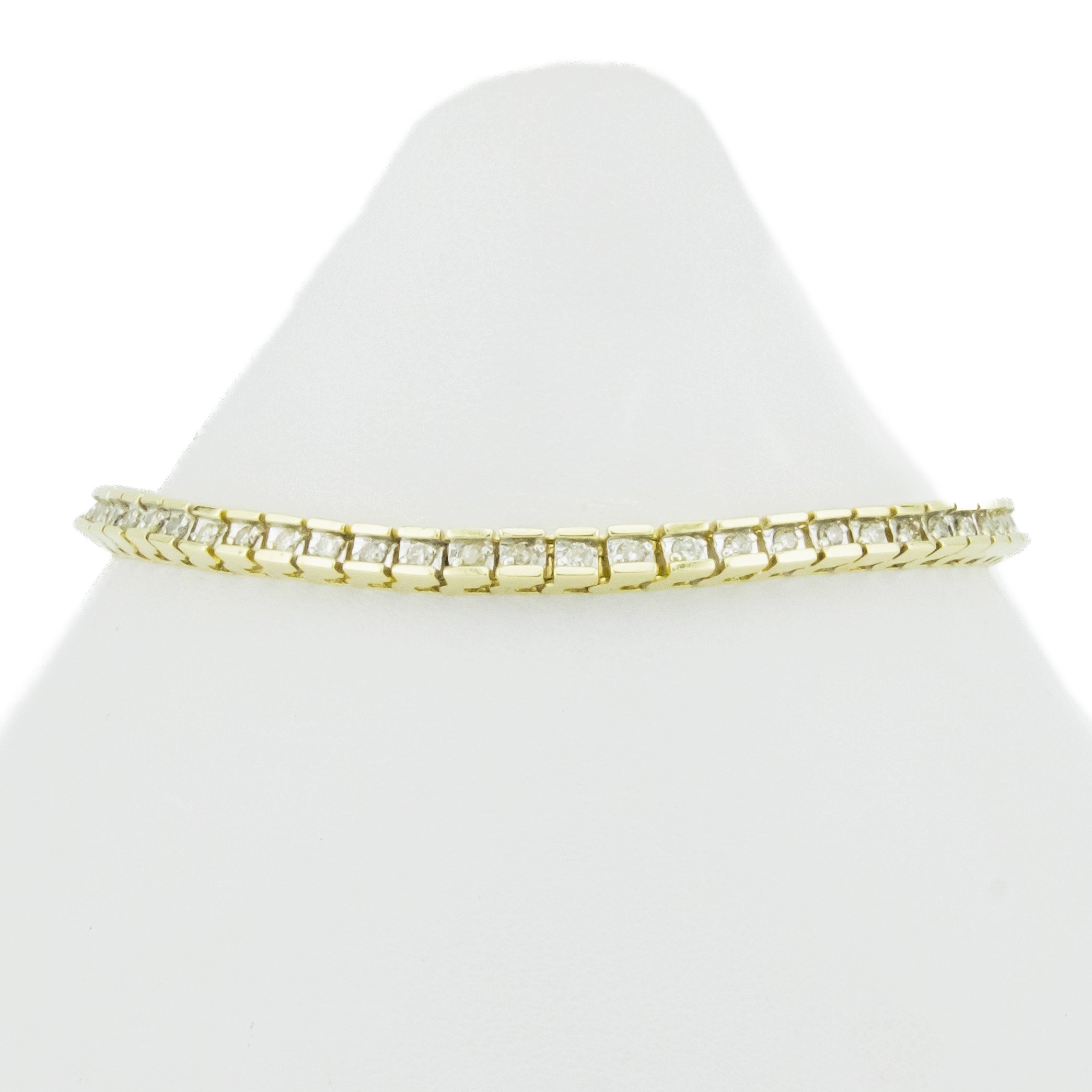 This diamond tennis bracelet is an estate item. It is in good condition. The diamond tennis bracelet has been cleaned and inspected by a professional jeweler. All diamonds have been graded by our GIA trained Accredited Jewelry Professional. All diamond and gemstone weights are approximate. See photos for reference.