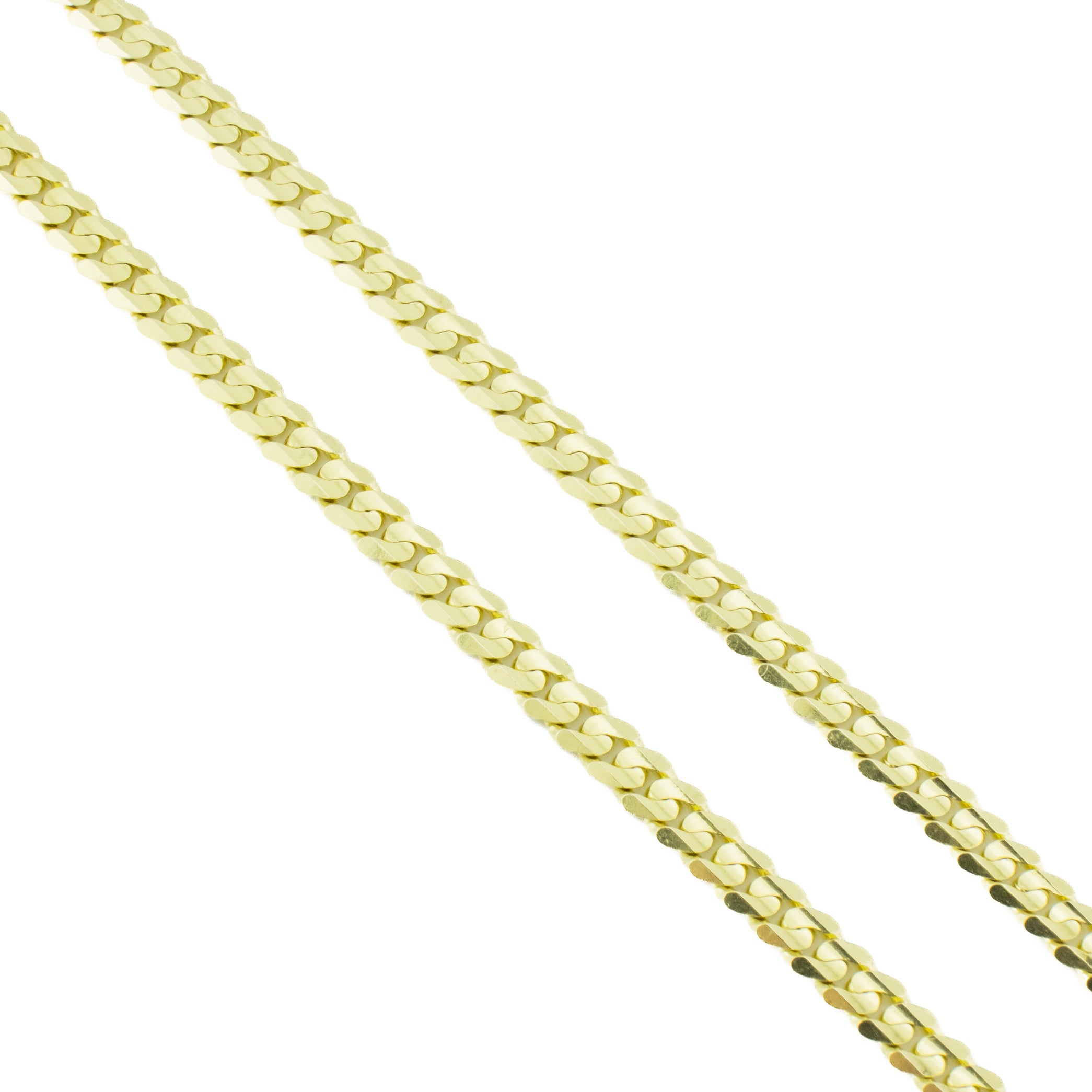 This curb link gold chain is an estate item. It is in good condition. The chain has been cleaned and inspected by a professional jeweler. See photos for reference.