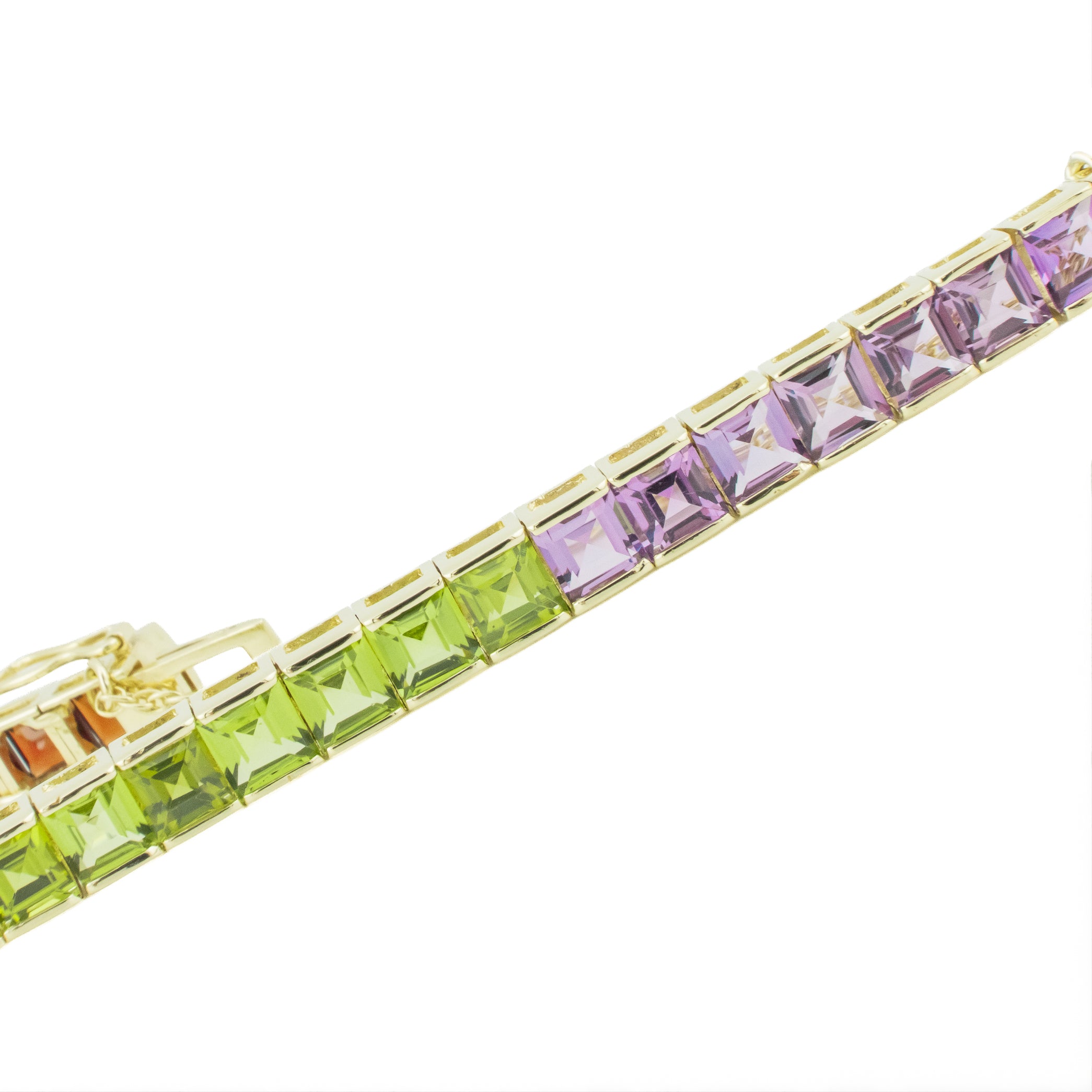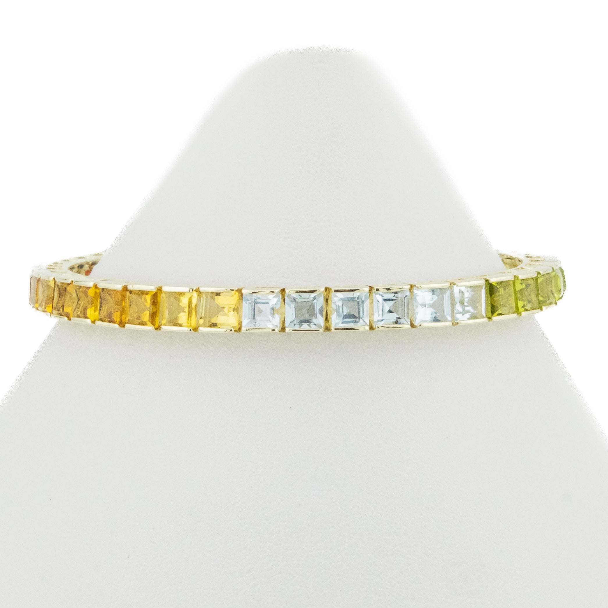 Princess Cut Multi Colored Gemstone 7" Tennis Bracelet in 14K Yellow Gold - 17.5 Grams