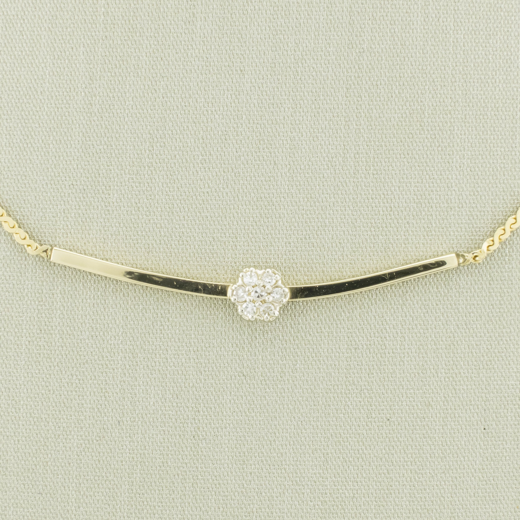 This diamond necklace is an estate item. It is in good condition. The necklace has been cleaned and inspected by a professional jeweler. All diamonds have been graded by our GIA trained Accredited Jewelry Professional. All diamond and gemstone weights are approximate. See photos for reference.