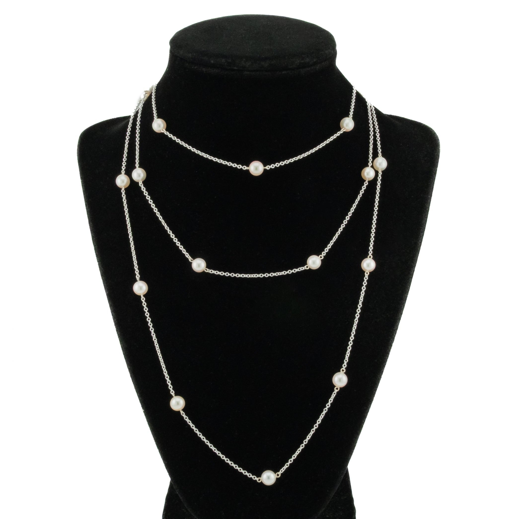 Mikimoto 6mm Round Pearl 48" Necklace in 18K White Gold - 16.6 grams