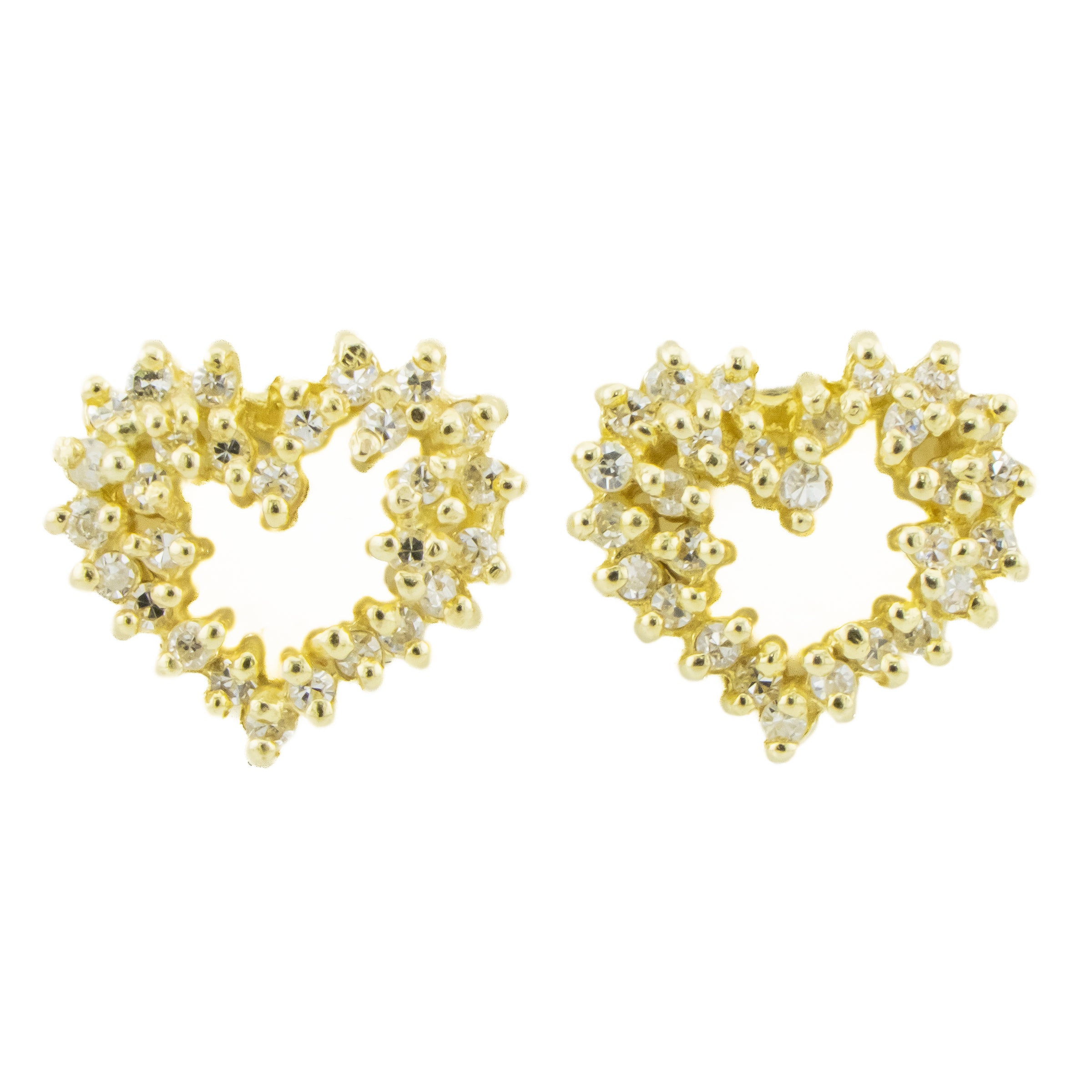 0.50ctw Diamond Accented Heart Stud Earrings in 14K Yellow Gold