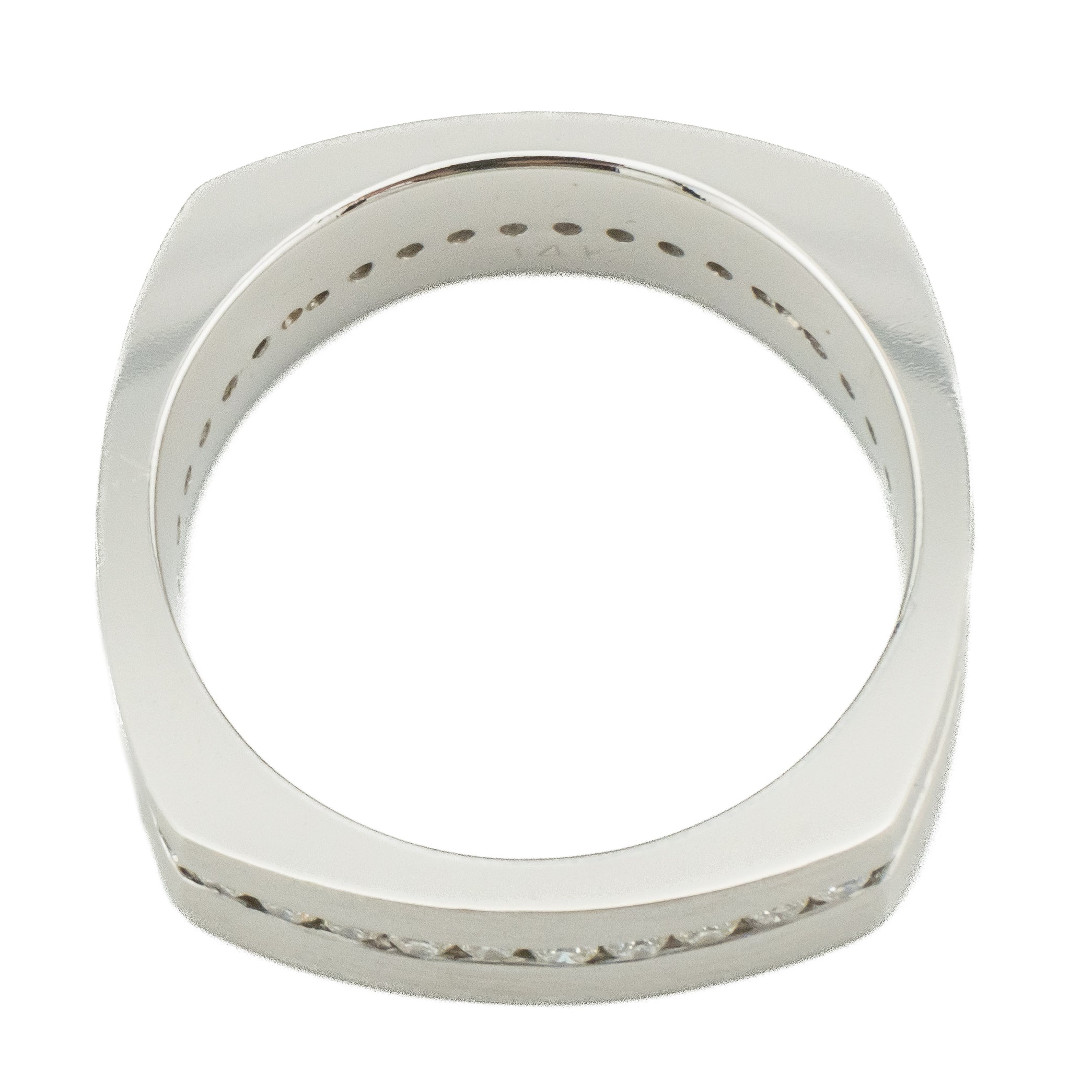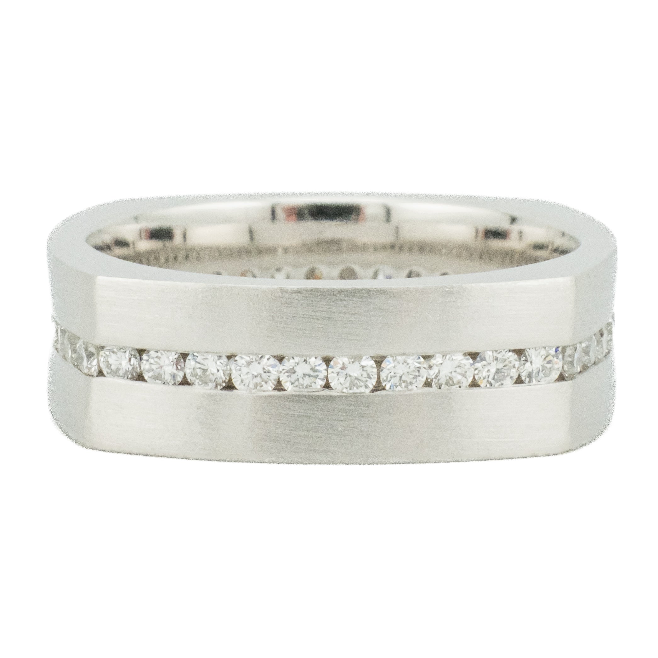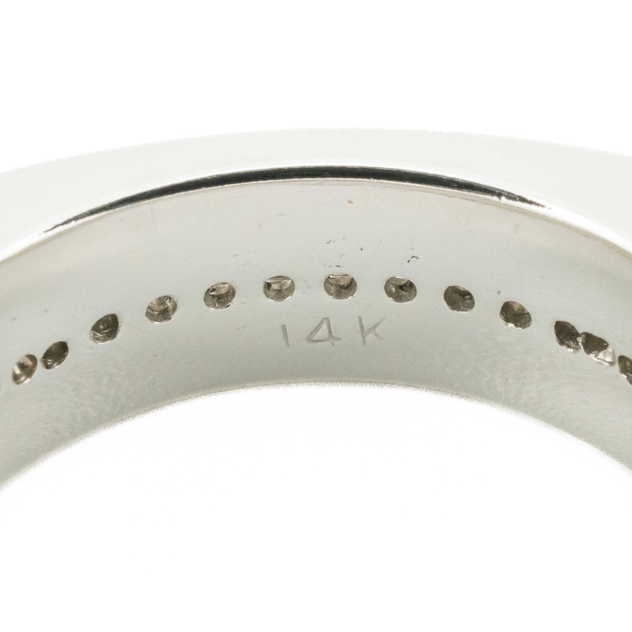 This diamond accented wedding band is a state item. The wedding band has been inspected by a professional jeweler. All diamonds have been graded by our GIA trained Accredited Jewelry Professional. All diamond and gemstone weights are approximate. Please see the photos for reference.
