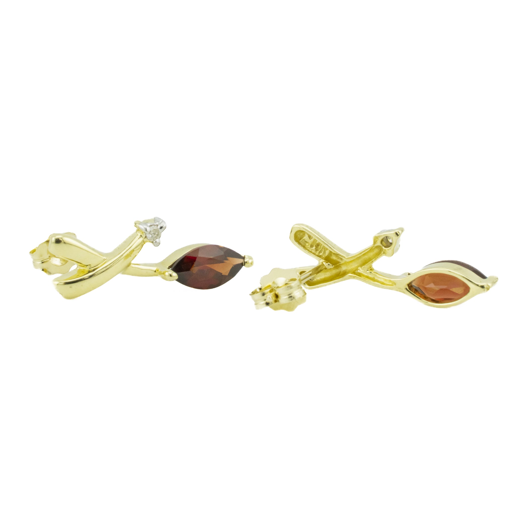 These garnet and diamond earrings are an estate item. They are in good condition. The earrings have been cleaned and inspected by a professional jeweler. All diamonds have been graded by our GIA trained Accredited Jewelry Professional. All diamond and gemstone weights are approximate. See photos for reference.