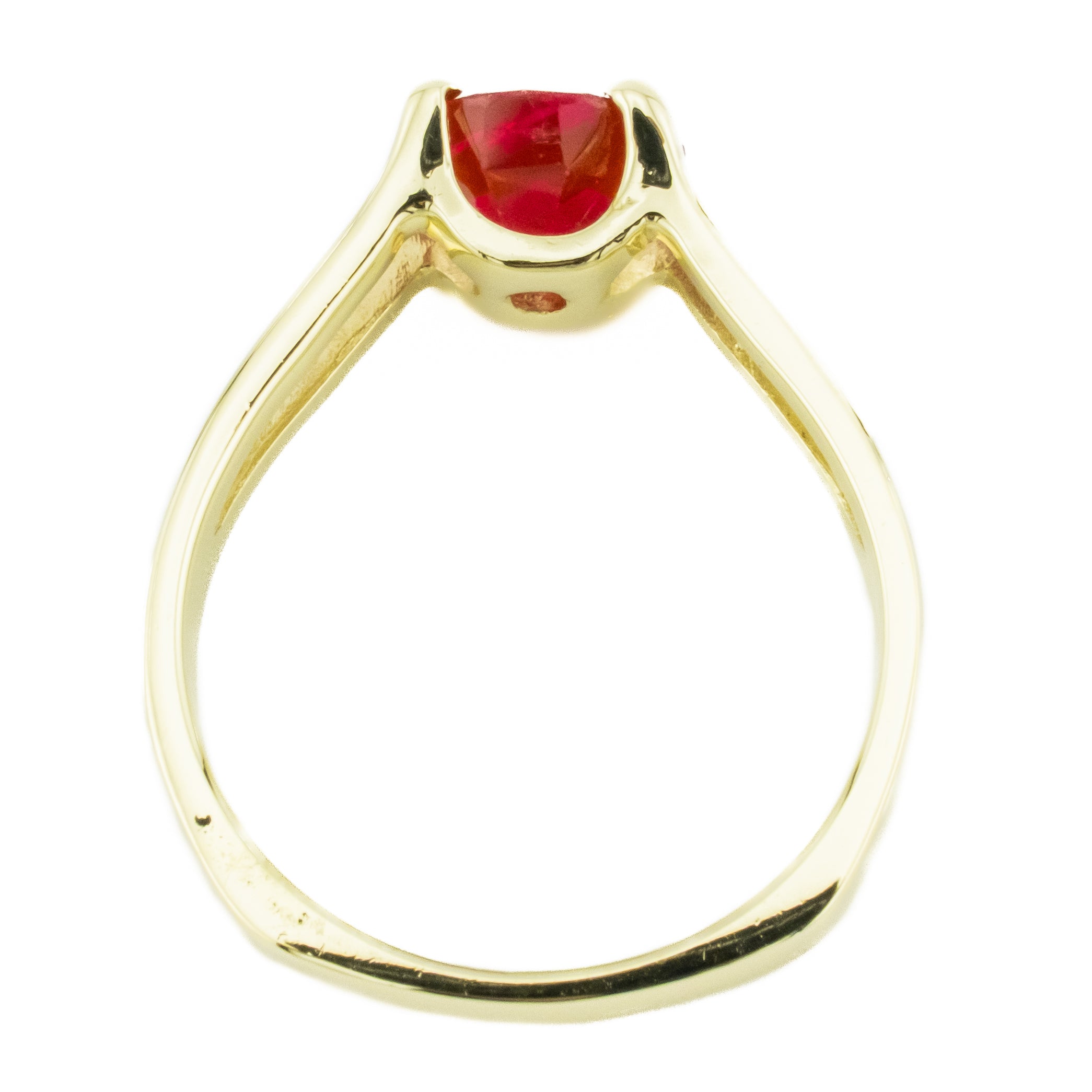 This lab ruby gemstone ring is an estate item. It is in good condition. The ring has been cleaned and inspected by a professional jeweler. All diamonds have been graded by our GIA trained Accredited Jewelry Professional. All diamond and gemstone weights are approximate. See photos for reference.