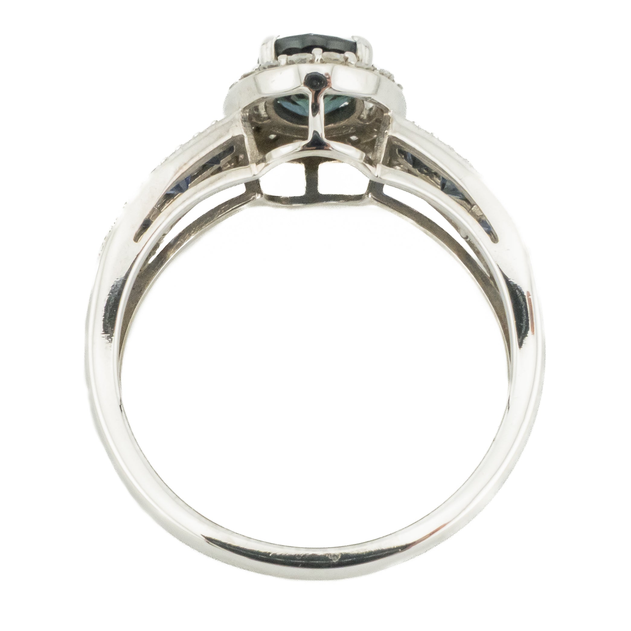 0.75ctw Oval Sapphire with Sapphire and Diamond Accents Ring in 10K White Gold - Size 7