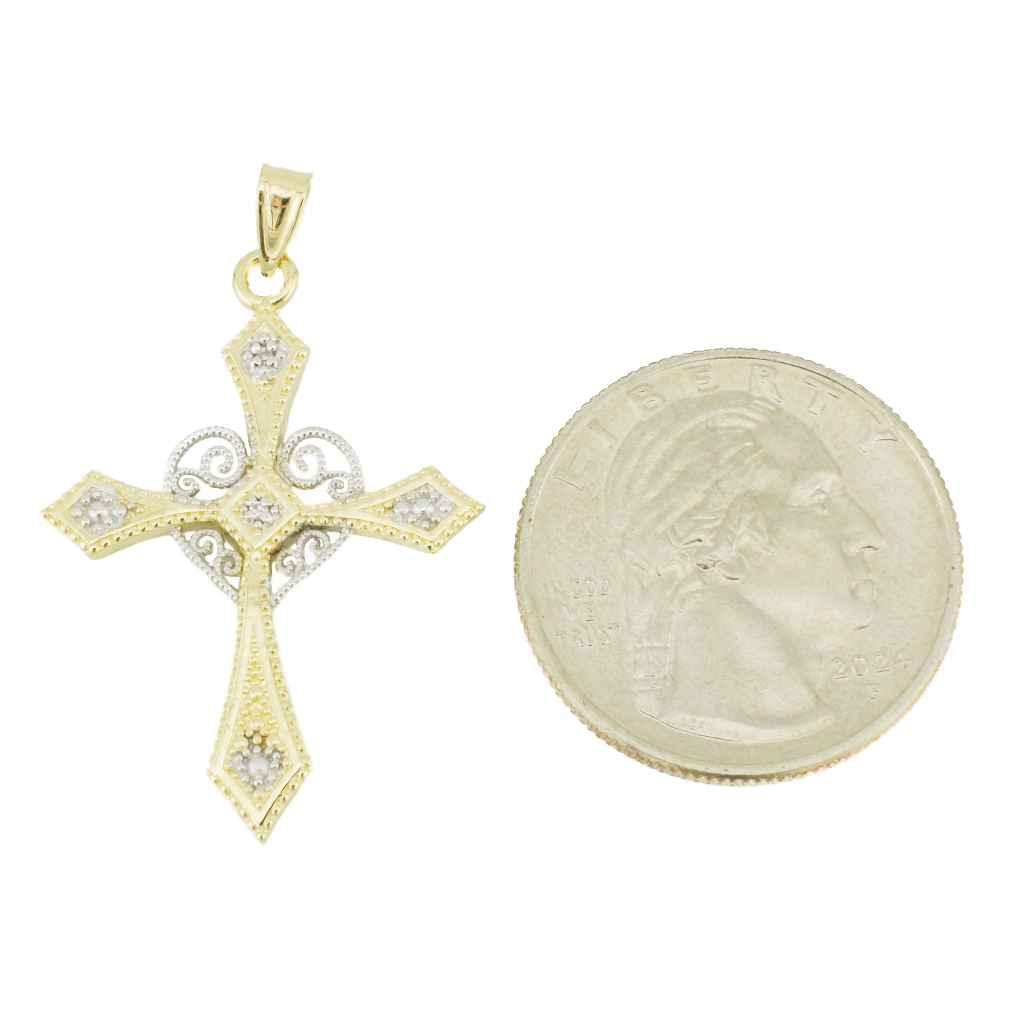 This cross pendant is an estate item. It is in good condition. The pendant has been cleaned and inspected by a professional jeweler. See photos for reference.